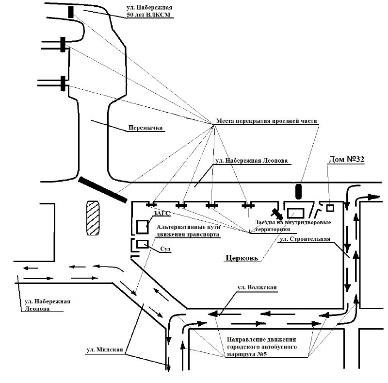 На время проведения мероприятия изменится маршрут автобусов №5: они свернёт с набережной Леонова на улицу Строительную, затем проследует по Волжской и выйдет на улицу Минскую. В таком же порядке они вернутся обратно.