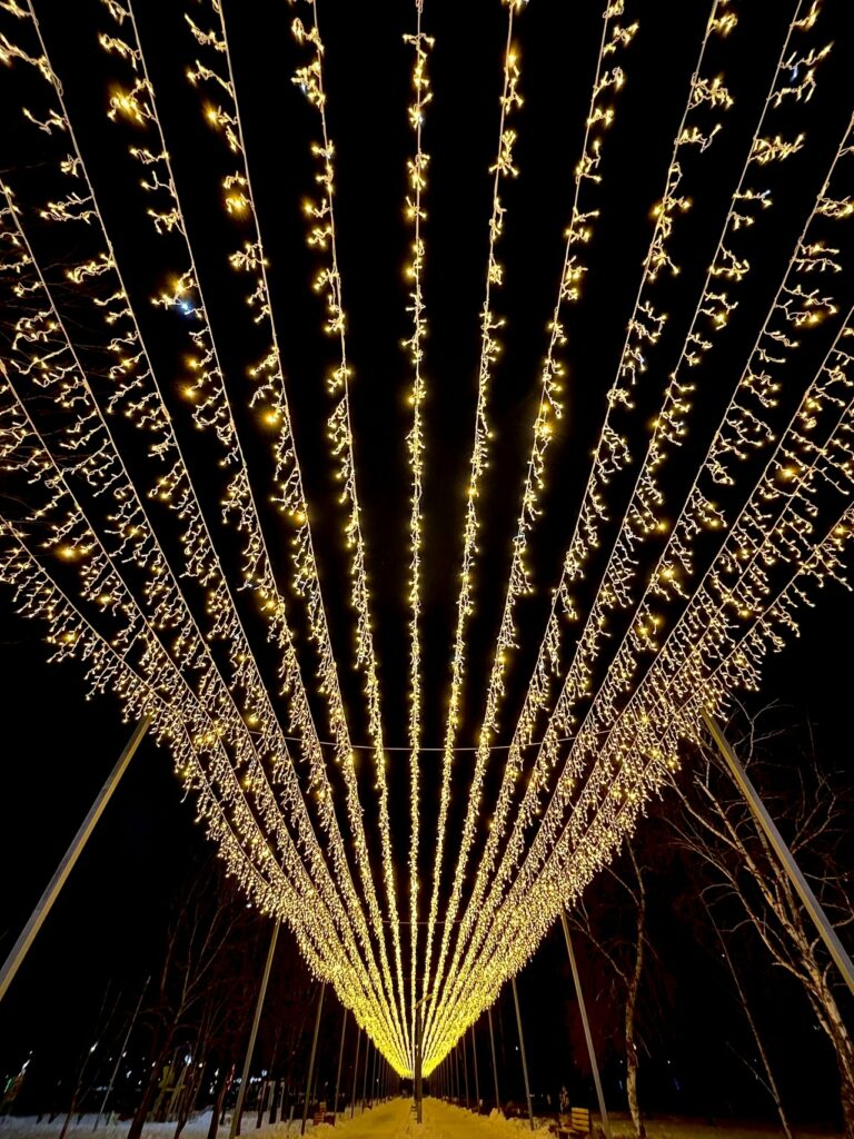Мерцающая тропа, напоминающая россыпь звёзд, создаёт волшебную атмосферу для вечерних прогулок и уже стала любимым местом для фотографий у горожан.