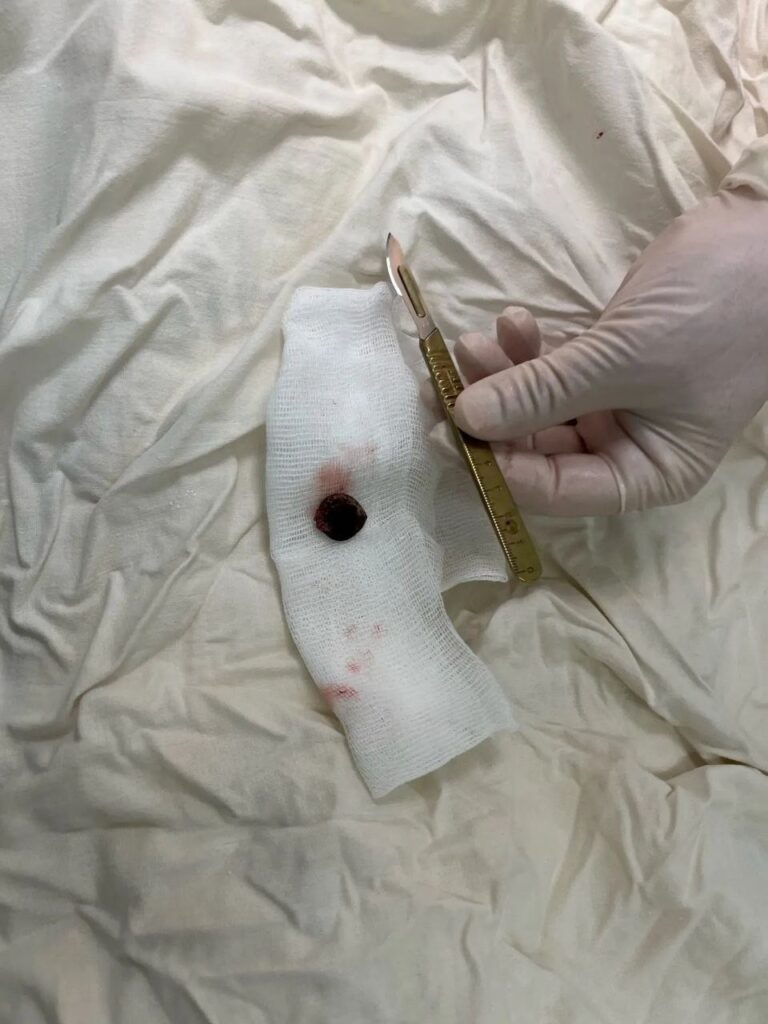 Консервативное лечение не помогло, и хирургическая бригада под руководством Романа Репина провела экстренную операцию. Энтеротомия — рассечение стенки тонкой кишки — длилась около полутора часов. Ситуацию осложняло начавшееся воспаление: в организме уже развивались признаки перитонита.